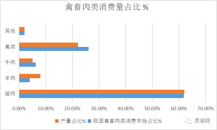 中國禽畜肉類生產量及消費占比