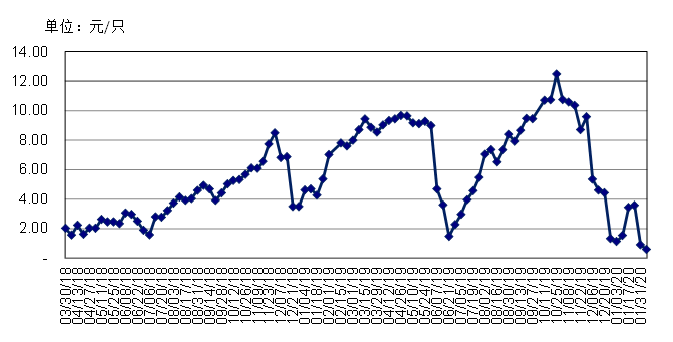 (2)雞苗價格跌破1元/羽。養殖場由于飼料短缺、出欄肉雞受阻、擔心疫情等原因,停止補欄;導致孵化場雞苗無法順利銷售和運輸,成交價格以0.3-1.0元/羽為主,較春節前3-4元/羽大幅下降,部分孵化場甚至出現掩埋雞苗的現象。