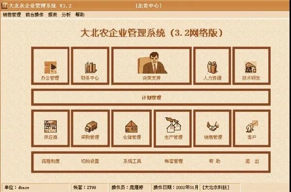 大北農(nóng)企業(yè)管理系統(tǒng)2002年界面(起步階段)