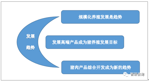 隨著我國豬養殖業發展的不斷進步,我國豬養殖業產業鏈不斷完善,我國豬養殖業朝著規模化、集約化方向發展。我國豬養殖業上游主要為飼料行業、育種行業以及獸藥等行業,下游主要為屠宰加工行業、冷鏈運輸以及豬鬃等行業,最后經過商超等環節,流向最終端消費者手中。
