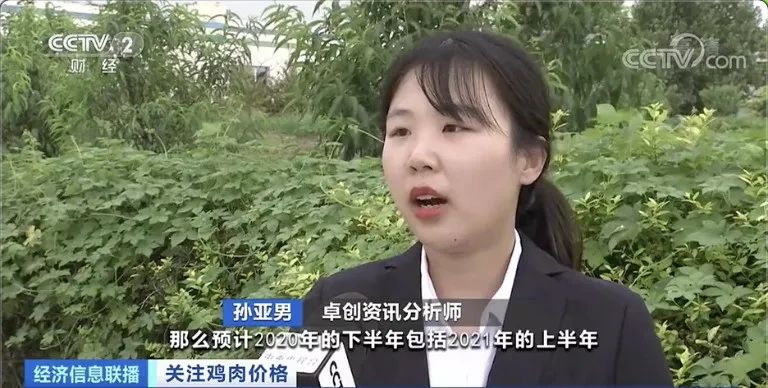 卓創資訊分析師 孫亞男:由于我們祖代種雞的產能呈現持續傳遞的作用,預計2020年下半年包括2021年上半年,產能會呈現增長的狀態,預計產能增幅在10%到20%,從需求面來看,較去年略有回落,在排除季節性增長的原因以外,預計國內肉雞價格會呈現低位運行的狀態。