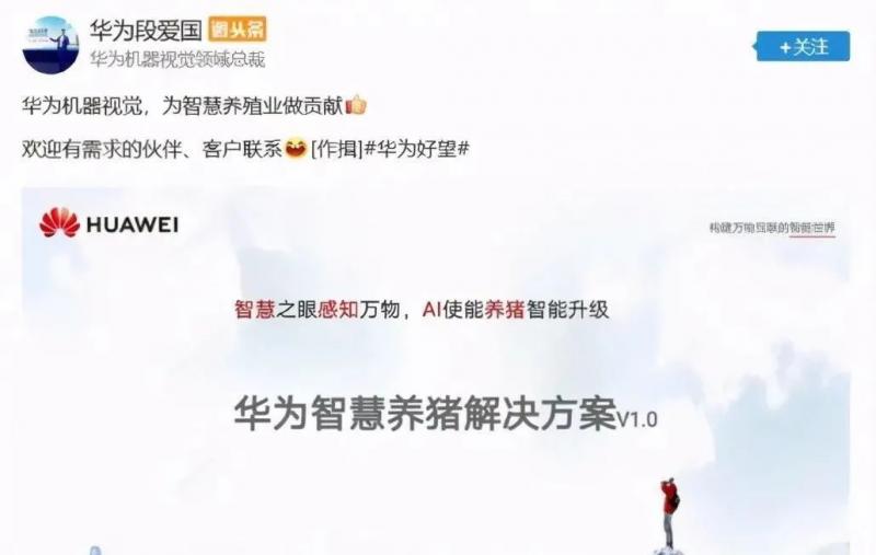 近幾日華為集團的機器視覺領域總裁表示華為最近:推出了智能養豬方案。