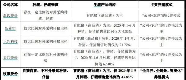 此外,與其他四家頭部豬企普遍采取的“公司+農(nóng)戶”合作養(yǎng)殖模式不同,牧原股份主要以全自養(yǎng)模式為主。