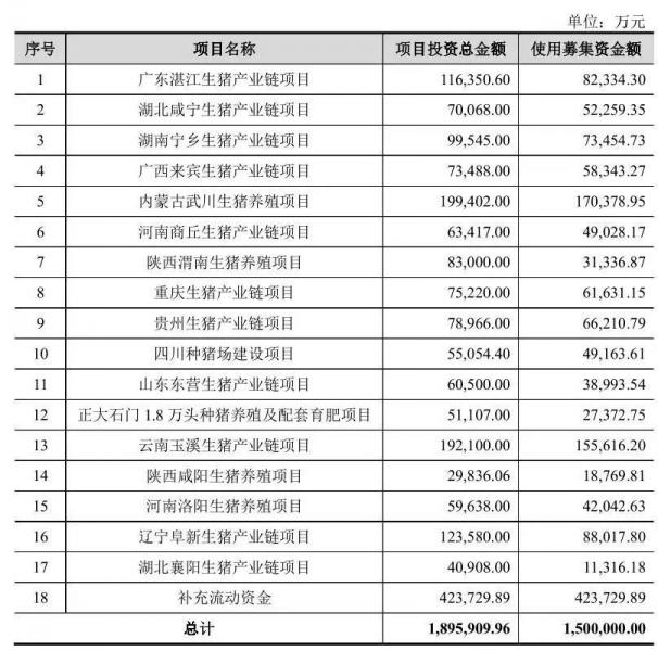 募集資金去向:進一步完善公司生豬業務在全國大范圍的區域性覆蓋,鞏固公司在生豬產業領域的領先地位。