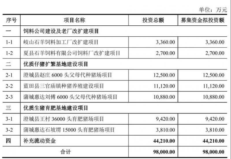 募集資金去向:圍繞公司生豬養殖及產業鏈上下游開展,進一步提升公司的競爭力。