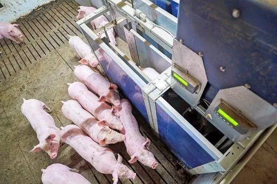 配有RFID技術(shù)的飼養(yǎng)站,用于跟蹤豬的個(gè)體采食量和體重
