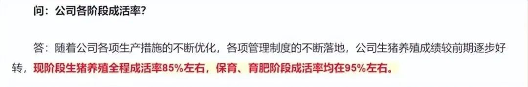 在投資者互動平臺了解到,牧原現階段養豬全程成活率約85%,保育、育肥階段成活率均在95%左右,在同行業中屬于較高水平。