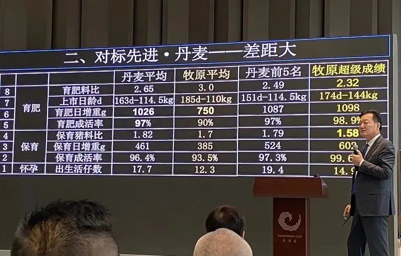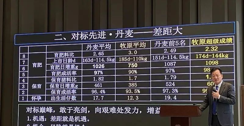 各位,其實我們現在就是作為一個企業,我們一定要對標我們人類文明的最高峰最高點,這才是我們要做的。如果看看丹麥最好成績,看看牧原最好成績,我們也不是那么矬,還有機會。其實我們也養出了和丹麥成績差不多,甚至還要好一點的成績。
