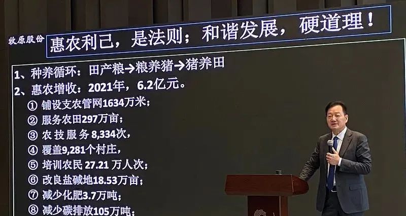 當然我們在其他方面(聽不清),我們的種豬,突破種豬瓶頸。牧原的育種,二元輪交一下子讓全中國不缺豬了,特別是非洲豬瘟的時候不缺種豬。國家領導和我們那個行業部門都很高興,因為有牧原向社會提供大量的種豬,給予牧原很高的評價和肯定。還有糧食安全。