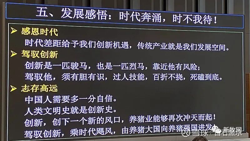 那么還有這個要志存高遠,中國人呢需要多一份自信。人類文明史,就是我們創新史。創新就是創下一個新的風口,養豬業能夠再次沖天而起。我們靠創新要創下一個養豬的新風口。駕馭創新要乘時代的巨風,由養豬大國向養豬強國邁進,是我們牧原發展的新時代使命。謝謝各位。