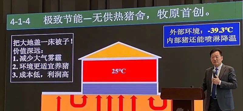 這樣一來這個創新通過我們的測試,先在東北挖一個這個深坑,埋上傳感器,我看看挖多深。那地下熱量多高。我們測了以后就是大約是 5 米以下,那么就是就可以達到十五十六度這樣的溫度。兩米左右是 0 度。地表就是負30到40度。那么我們在這個時候就是根據這個測算做這個豬舍設計。現在東北這個寒冷地帶不適宜人居和養豬的地方,現在反而成了就是養好豬的地方,這就是創新的價值。