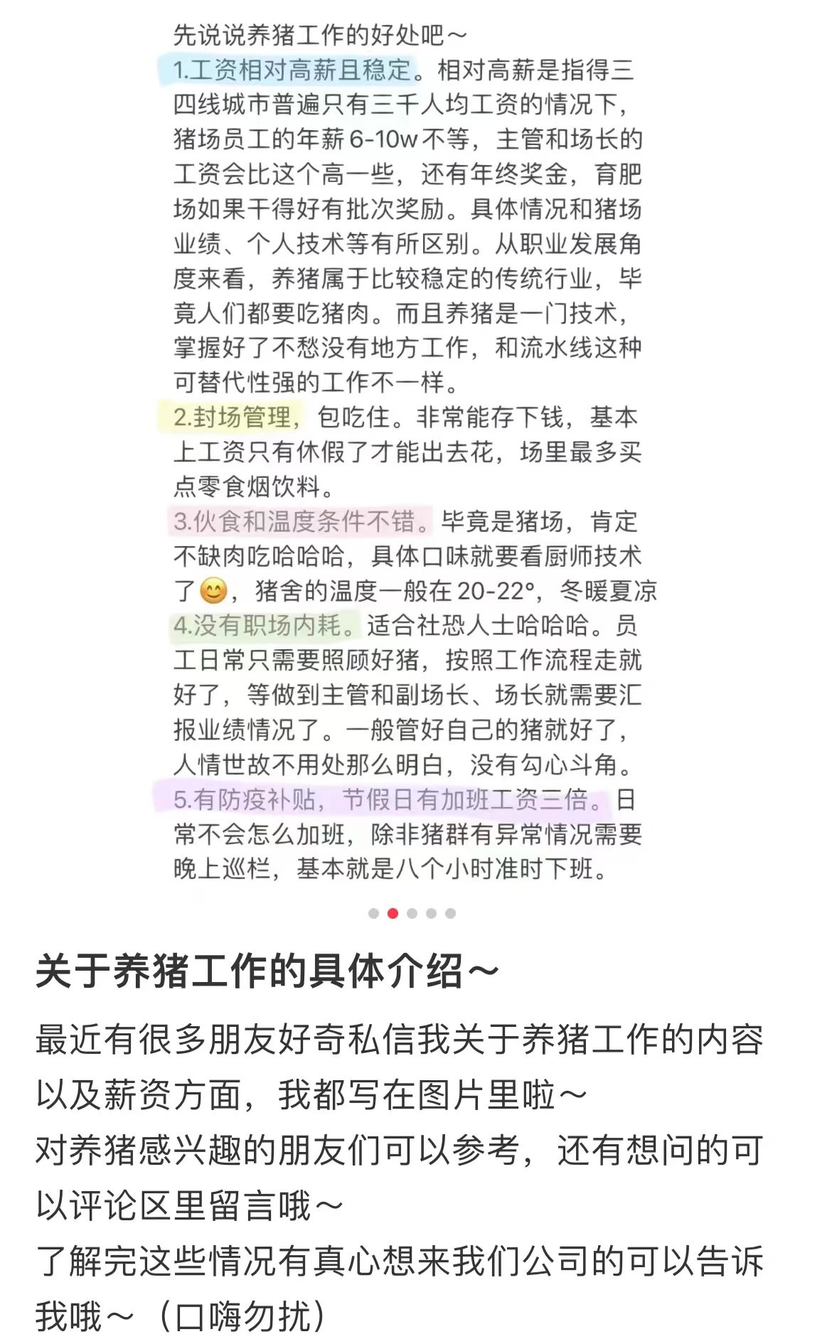 孫卓表示,養豬場的工資一般是根據學歷還有技術來判斷,自己的工資大概在10萬左右,每一年根據生產業績的情況,還有豬價的情況,獎金會有波動,技術性強一些的工資相對高一些。