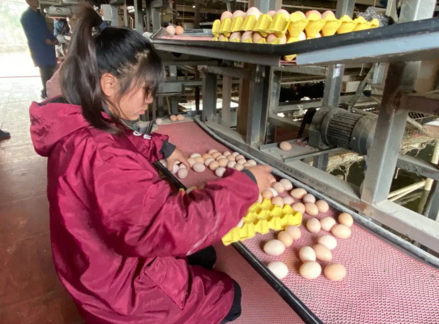 據了解,該養殖場建有標準化雞舍700余平方米,淡水魚養殖面積30畝,于2023年12月投產。目前年產蛋量約7萬公斤、產魚4萬多公斤,年產值約120萬元。養殖場探索發展“雞+魚+水稻”生態循環種養新模式,不僅延長種養殖產業鏈,還帶動農戶就近就業,共同走上增收致富路,實現生態與經濟效益雙贏。