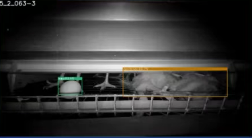 利用巡舍機器人獲取蛋雞個體體溫以及雞舍內任何位置的環境溫度,結合蛋雞的采食、飲水、排泄、蛋重、產蛋時間進行連續監測,及時了解蛋雞的生長健康狀況(死雞識別,圖4),實現在無人為干擾的情況下對雞只健康狀況、生產性能作出動態記錄和客觀評價,為蛋雞的營養水平確定和防治疾病提供精確、穩定、連續的數據記錄,為雞舍優化設施配套及飼養管理綜合配套技術提供依據。