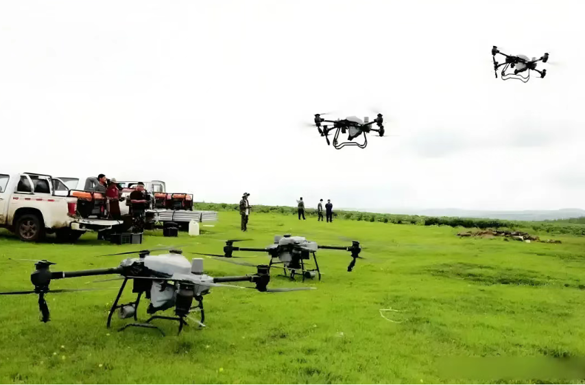精準投料:植保無人機改裝飼料播撒系統,單架次可覆蓋50畝牧場(效率是人工的20倍),投喂誤差<3%。