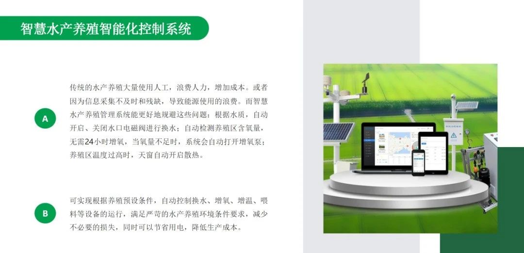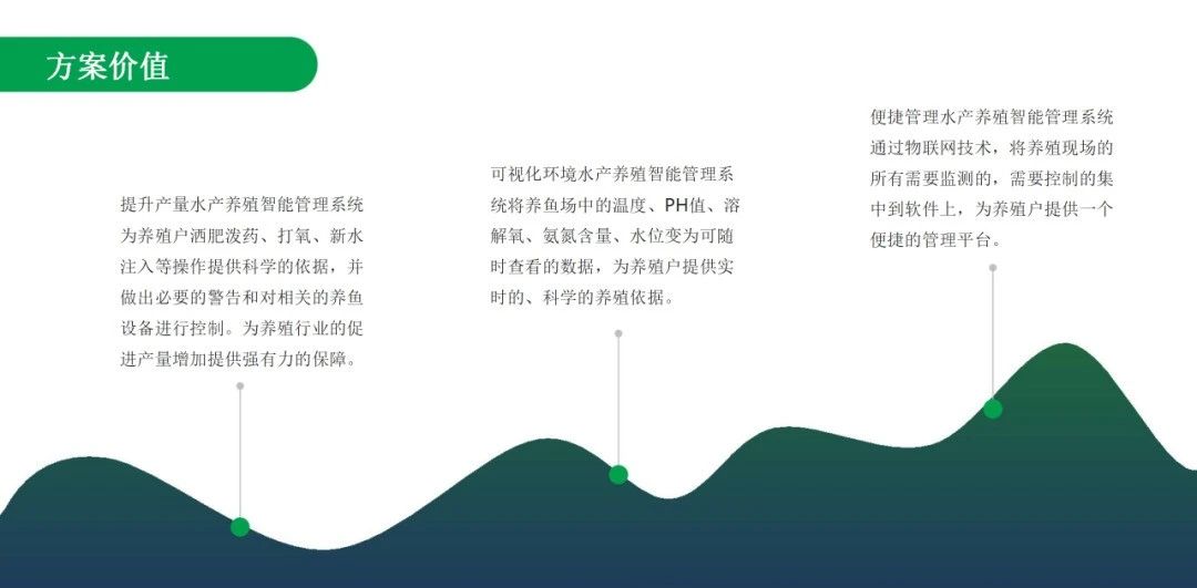 該方案通過物聯網、大數據、云計算等技術,實現對養殖環境、水質、水產品生長狀況等全方位監測管理,提升水產養殖的精準性、科學性和管理效率。