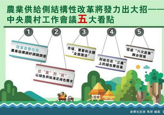 會議強調,推進農業供給側結構性改革,要在確保國家糧食安全的基礎上,緊緊圍繞市場需求變化,以增加農民收入、保障有效供給為主要目標,以提高農業供給質量為主攻方向,以體制改革和機制創新為根本途徑,優化農業產業體系、生產體系、經營體系,提高土地產出率、資源利用率、勞動生產率,促進農業農村發展由過度依賴資源消耗、主要滿足“量”的需求,向追求綠色生態可持續、更加注重滿足“質”的需求轉變。