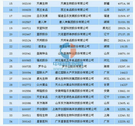 以下為2018年農業行業上市公司凈利潤排名情況: