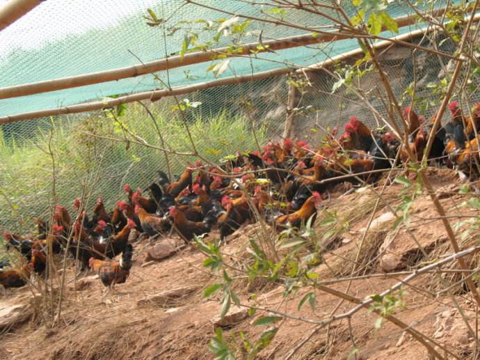 先喂養一千只烏骨雞、珍珠雞、貴妃雞等