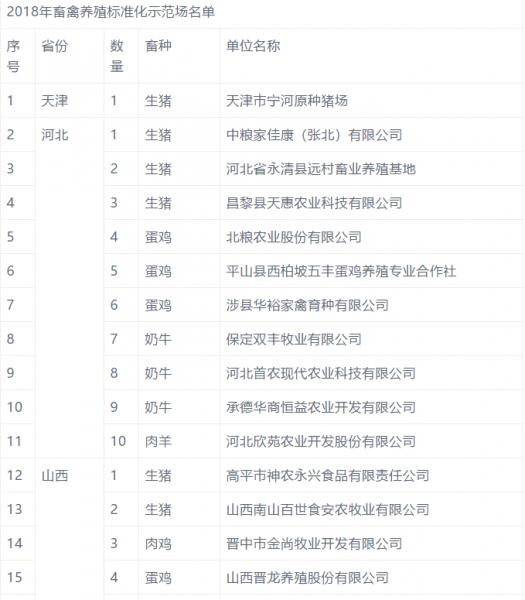 附件:2018年農(nóng)業(yè)農(nóng)村部畜禽養(yǎng)殖標準化示范場名單