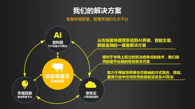 此外,雙方在智慧養(yǎng)豬方面的志同道合也是促成這筆投資的重要原因。業(yè)內(nèi)普遍認為,2018年是中國智慧養(yǎng)豬元年,而安佑集團和農(nóng)信互聯(lián)都是這個領(lǐng)域的重要推動者和踐行者。2018年8月5日,安佑、農(nóng)信互聯(lián)攜手普立茲、京東云等單位聯(lián)合發(fā)起了首屆中國智慧養(yǎng)豬產(chǎn)業(yè)實踐峰會。農(nóng)信互聯(lián)在會上發(fā)布了智慧養(yǎng)豬整體解決方案,即作為一家平臺型生態(tài)企業(yè),農(nóng)信互聯(lián)定位為開放的智慧養(yǎng)豬生態(tài)“路由器,充分融合、搭載、服務(wù)行業(yè)中任何優(yōu)秀的智能設(shè)備及AI算法,為以安佑為代表的豬場客戶提供從傳統(tǒng)豬場管理系統(tǒng)到AI養(yǎng)豬、智能交易、數(shù)據(jù)金融的一整套解決方案。安佑創(chuàng)始人洪平先生高度贊賞農(nóng)信互聯(lián)在智慧養(yǎng)豬的探索。因此,有理由相信雙方的合作必將推動我國的智慧養(yǎng)豬發(fā)展進程。