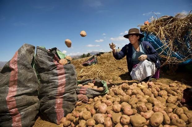米格爾·阿爾鐵里:“農(nóng)民被趕出自己的土地?!保▓D為秘魯阿亞庫喬的農(nóng)民正在撿土豆)(圖片來源:新蘇黎世報(bào)網(wǎng)站)