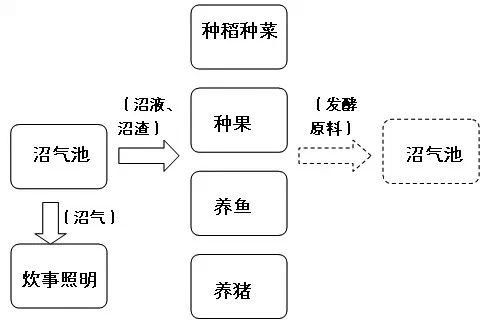 該模式是利用山地、農(nóng)田、水面、庭院等資源,采用“沼氣池、豬舍、廁所”三結(jié)合工程,圍繞主導(dǎo)產(chǎn)業(yè),因地制宜開展“三沼(沼氣、沼渣、沼液)”綜合利用,從而實(shí)現(xiàn)對農(nóng)業(yè)資源的高效利用和生態(tài)環(huán)境建設(shè)、提高農(nóng)產(chǎn)品質(zhì)量、增加農(nóng)民收入等效果。