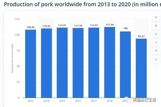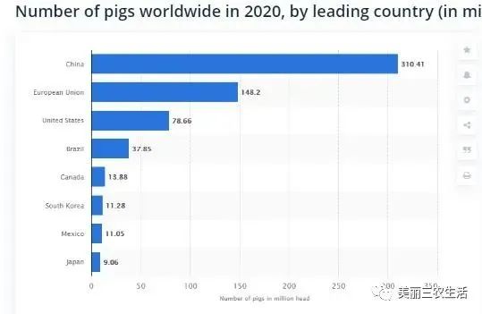 根據STATISTA數據公布統計,截至2020年4月,中國擁有3.1億頭生豬,歐盟有1.48億頭美國有0.78億頭,占據世界前三位。目前全球生豬總量約為6.67億頭豬,相比2019年同期的7.76億頭下降了約1.1億頭。
