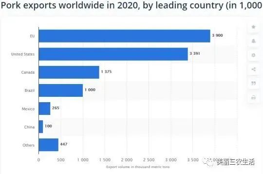 (圖:2020年全球主要豬肉出口國出口量預測)