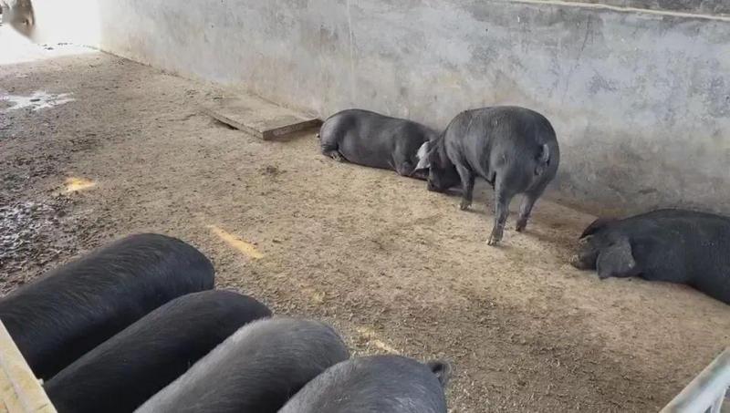 這是大棚的養殖區。每個大棚配備的豬舍面積約120平方米,可以容納50頭豬。目前養殖的是當地的泰山黑豬,一頭豬能凈掙3000元。
