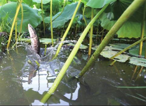 “魚(yú)藕共生”即“鰍、藕”、“甲魚(yú)、菱”、“ 錦鯉、藕”等生態(tài)循環(huán)模式是一種在藕田里套養(yǎng)泥鰍、甲魚(yú)等水產(chǎn)品的種養(yǎng)混作模式。