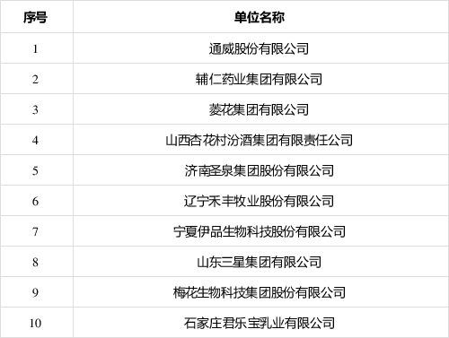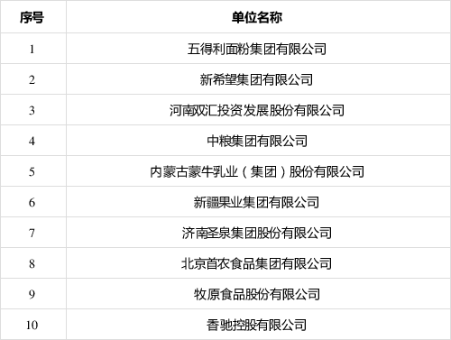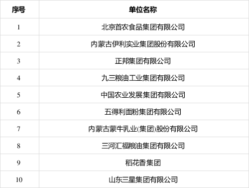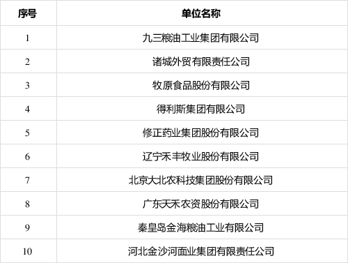 全國農業產業化龍頭企業科技創新10強