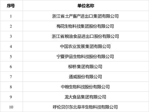 全國農業產業化龍頭企業外貿出口10強