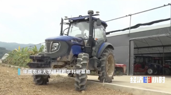 在華南農業大學增城教學科研基地,一輛無人拖拉機自動開出停機庫,沿著事先設定好的路線,過田坎、下田地、旋耕作業,全程自動化操作,路線誤差不超過3厘米。