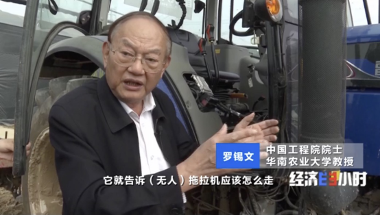 中國工程院院士、華南農業大學教授羅錫文告訴《經濟半小時》記者,這14畝地使用無人駕駛拖拉機,40分鐘左右就完成了播種,這個效率是人工的100倍以上。