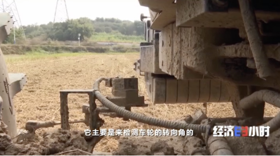 在實際操作時,羅錫文團隊還在無人駕駛拖拉機左前輪旁邊安裝了角度傳感器,每隔100毫秒,會調整一次它的角度位置,這樣,頭上北斗定位,腳下傳感器微調,無人拖拉機就可以走直線了。