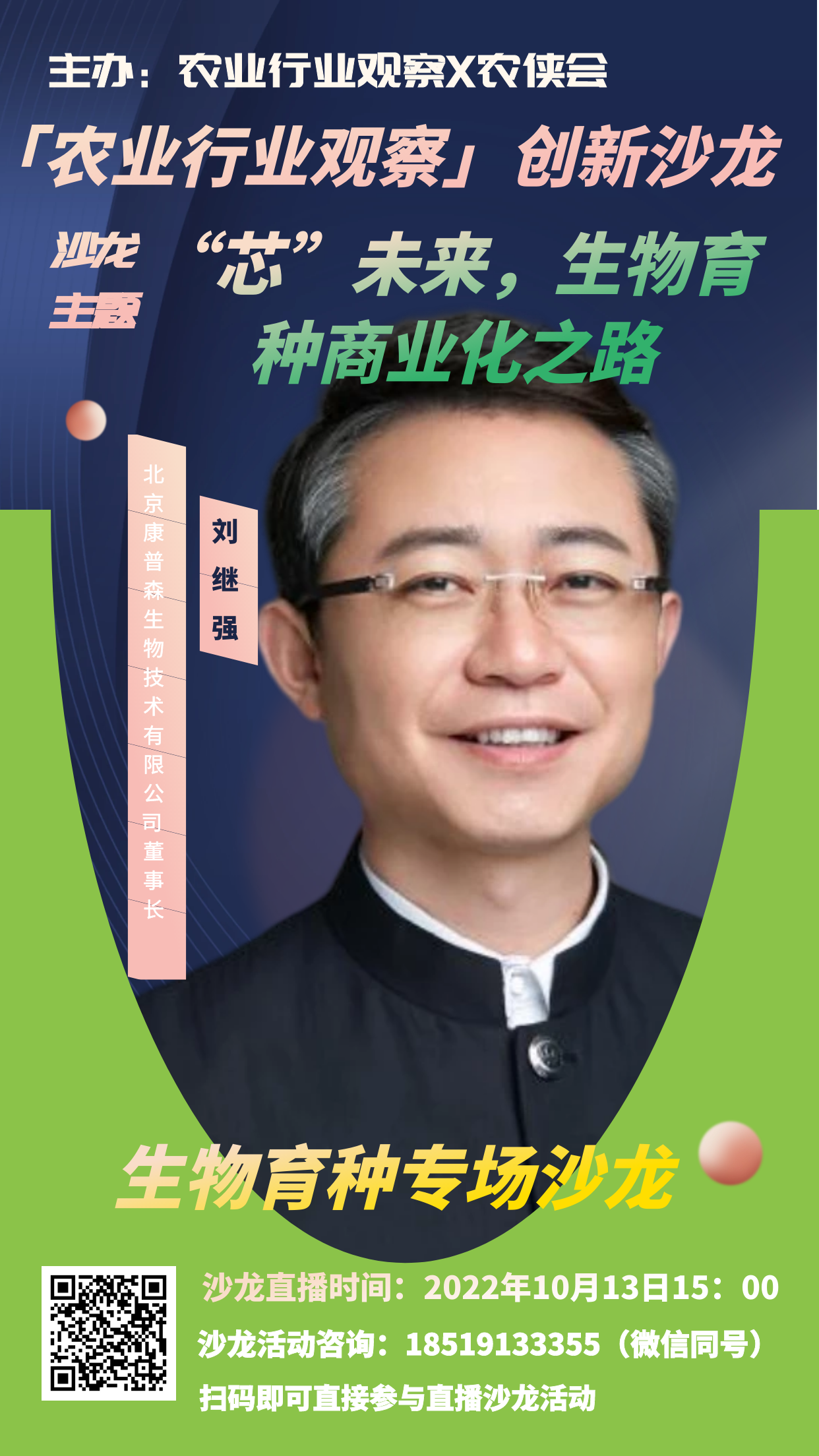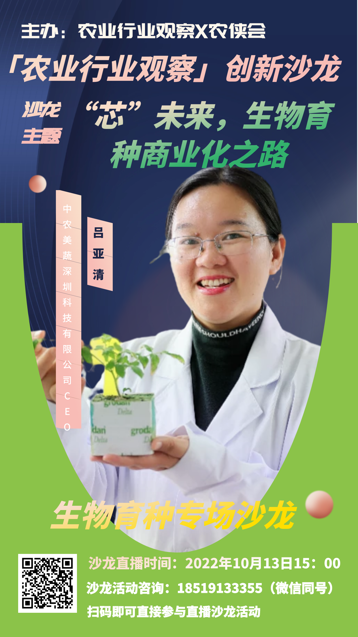 因此,農業行業觀察、農俠會策劃了未來農業系列活動,本期活動聚焦““芯”未來,生物育種商業化之路”主題,將于2022年10月13日周四15:00-17:00和大家在線上見面。本期活動希望通過對育種公司、農業科技公司的育種創新布局,生物育種新趨勢、產業化、商業化的解讀及分享,解密生物育種的新圖景、新商業、新模式,共同展望未來種業的可能性。