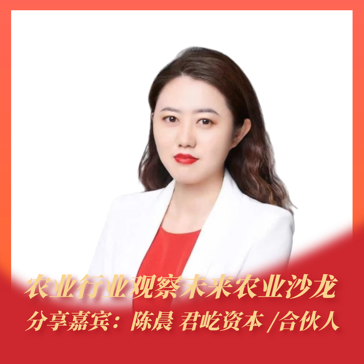 陳晨,君屹資本 /合伙人。君屹資本為專注于農食科技、大消費領域的新興精品投行。 團隊成員主要來自上市公司、券商、投資機構。