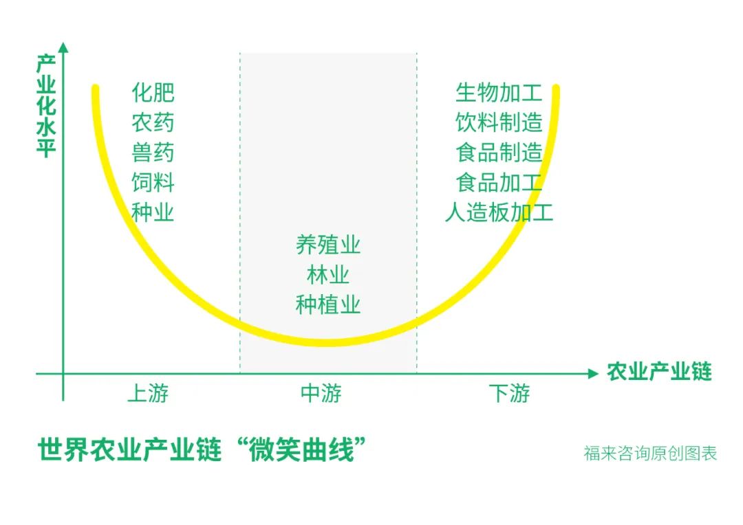 一般人談農業,多是指中游,中游種植環節風險大、投資回收期長,精明的商人,往往繞過這一環節,只做“農商”,做出品牌后,再控制上游或中游。