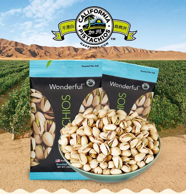 美國派拉蒙農場是全球最大的開心果原料供應商,在加州擁有近60萬畝的種植基地,全球70%的優質開心果都出自這里,它采用縱向一體化戰略,集種植、收購、加工、銷售為一體。派拉蒙農場充分發揮規模優勢和效率優勢,在開心果市場中掌握了世界話語權和定價權。因此,當派拉蒙推出自有品牌“萬多福”純天然開心果,并打出“不漂白,自然開”的健康開心果加州原產地標識的時候,其市場影響力和開拓力,幾乎無出其右者(見圖1-8)。