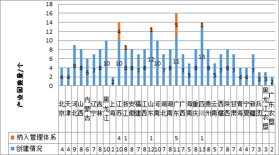 從各省份來看,廣東16個(創建11個、納入體系5個)、四川省14個(創建13個、納入體系1個)、江蘇省14個(創建10個、納入體系4個),山東省13個(創建12個、納入體系1個),黑龍江11個,河南10個,其余省份不足10個。各省具體數量詳見圖1。
