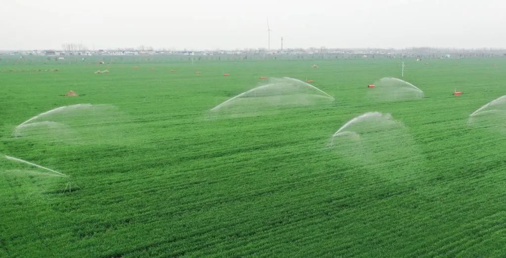 ▲ 在河南省周口市商水縣張莊鄉高標準農田示范區,水肥一體機在為麥田澆灌(2022年3月22日攝,無人機照片)。新華社記者 張浩然 攝