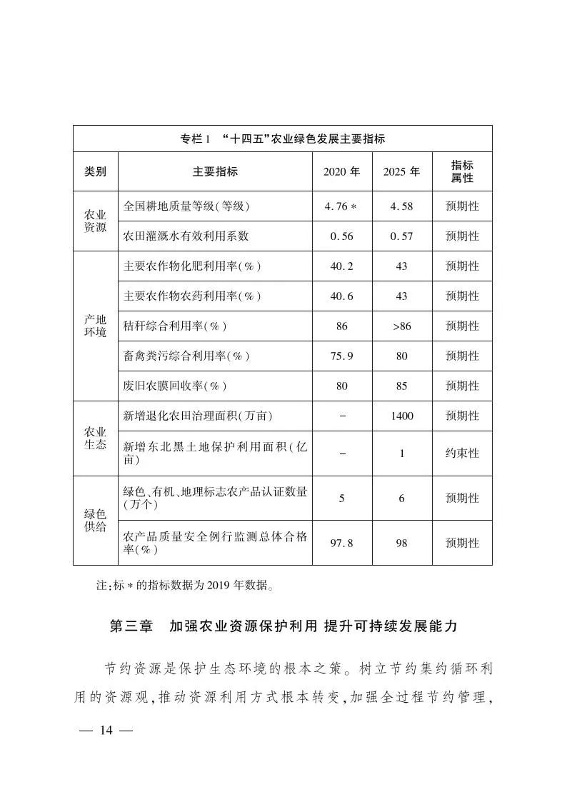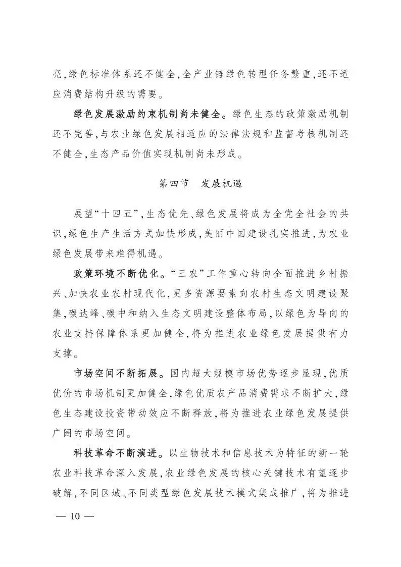 農業農村部 國家發展改革委 科技部 自然資源部 生態環境部 國家林草局關于印發 《“十四五”全國農業綠色發展規劃》的通知