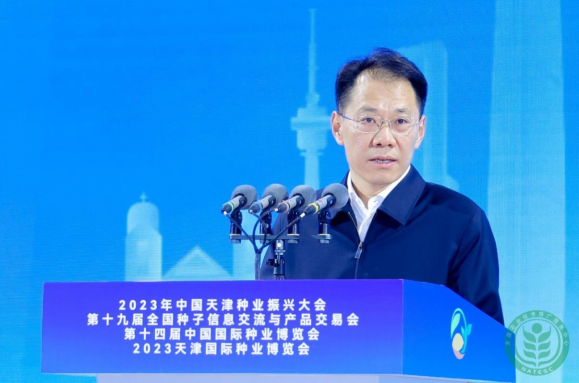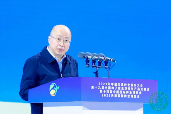 農(nóng)業(yè)行業(yè)觀察天津報道|2023年3月18日,第十四屆中國國際種業(yè)博覽會暨第十九屆全國種子信息交流與產(chǎn)品交易會在天津市隆重開幕。本屆大會與2023中國天津種業(yè)振興大會、天津國際種業(yè)博覽會一體化設計、一體化運作、聯(lián)合舉辦。農(nóng)業(yè)農(nóng)村部副部長張興旺、天津市副市長謝元出席開幕式并致辭,中國工程院李德發(fā)院士、萬建民院士、鄒學校院士、侯水生院士出席,農(nóng)業(yè)農(nóng)村部相關司局單位負責同志,有關科研高校、行業(yè)協(xié)會、種業(yè)頭部企業(yè)、金融機構負責同志,部分省、自治區(qū)、直轄市農(nóng)業(yè)農(nóng)村部門負責同志出席大會開幕式。天津市人民政府副秘書長王智毅、全國農(nóng)業(yè)技術推廣服務中心副主任劉信分別主持開幕式上下半場。