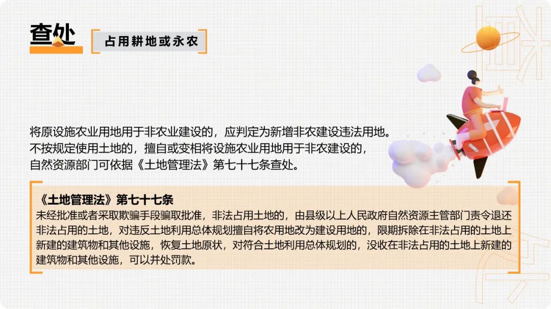 《土地衛片執法圖斑合法性判定規則》明確:將原設施農業用地用于非農業建設的,應判定為新增非農建設違法用地。