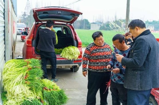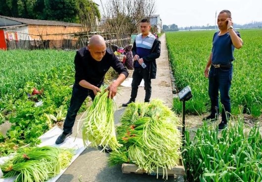 隨著溫江蒜薹進入采收季節,連日來,溫江蒜農都忙碌在蒜田里和小路邊,拉蒜薹的摩托車和汽車來回穿梭在機耕道上,蒜薹收購商紛至沓來,一車車鮮香的溫江蒜薹從此發往成都的大小市場,乃至湖北、貴州、陜西、河南等全國各地,一曲“稻蒜輪作千斤糧萬元錢”的鄉村振興交響曲奏響在溫江鄉村田野。