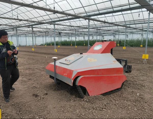 點甜科技團隊應用了最新研制出的蔬菜大棚機器人系列,該機器人采用了電機作為動力系統,并通過圖像識別、人工智能算法、自動駕駛等前沿技術,讓機器人擁有了智慧大腦。全自動模式下,加載了棚內地圖的智能機器人,按照規劃好的路徑,進行播種、旋耕、起壟等基本農事操作。
