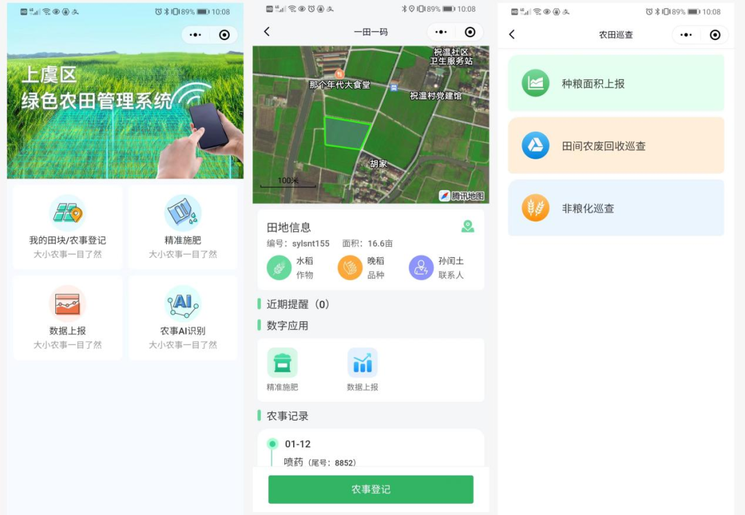通過手機,種糧大戶可以對地塊位置進行GPS定位,查看每一個地塊的環(huán)境信息和作物生長信息。巡檢員通過APP進行“非糧化”和農(nóng)業(yè)廢棄物回收巡查,發(fā)現(xiàn)并上報異常問題,實現(xiàn)“田碼+人員+設(shè)施設(shè)備+巡查管護”關(guān)聯(lián)對應(yīng),有效提高對高標(biāo)準(zhǔn)農(nóng)田的監(jiān)管能力和服務(wù)效能。