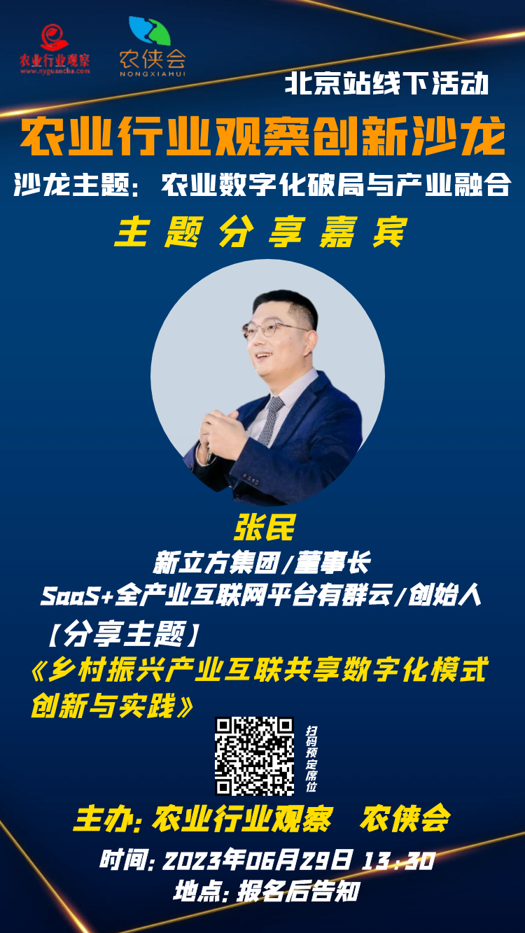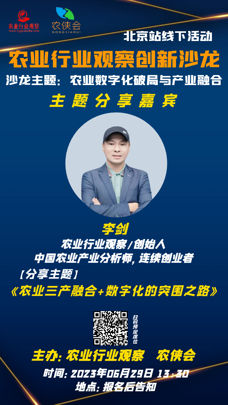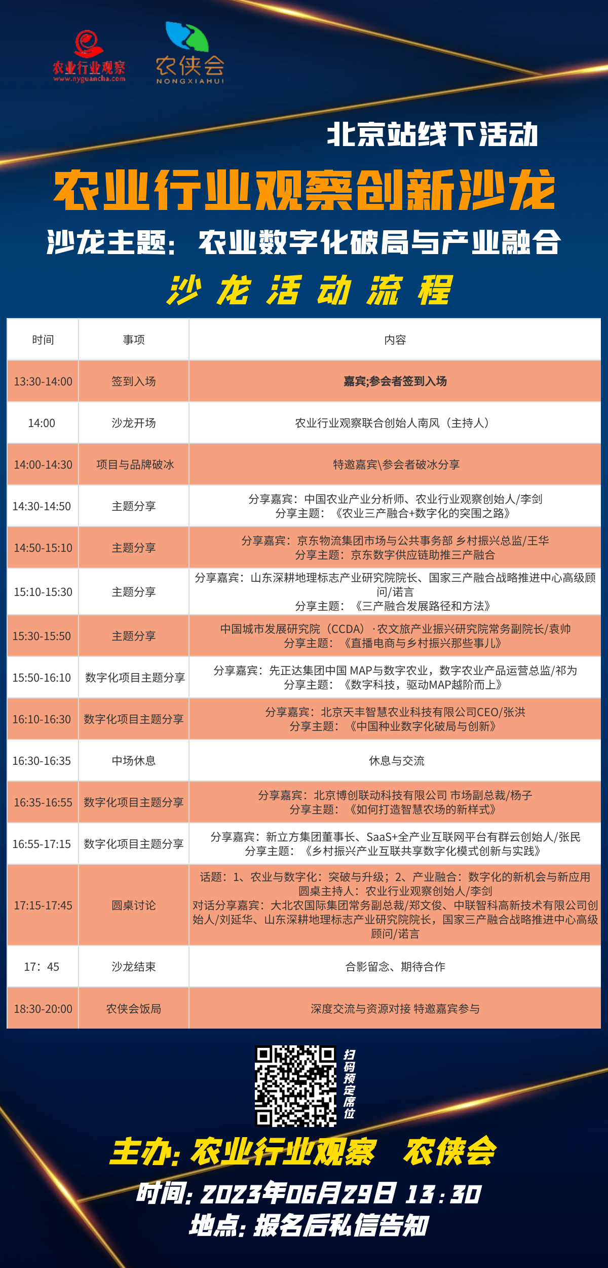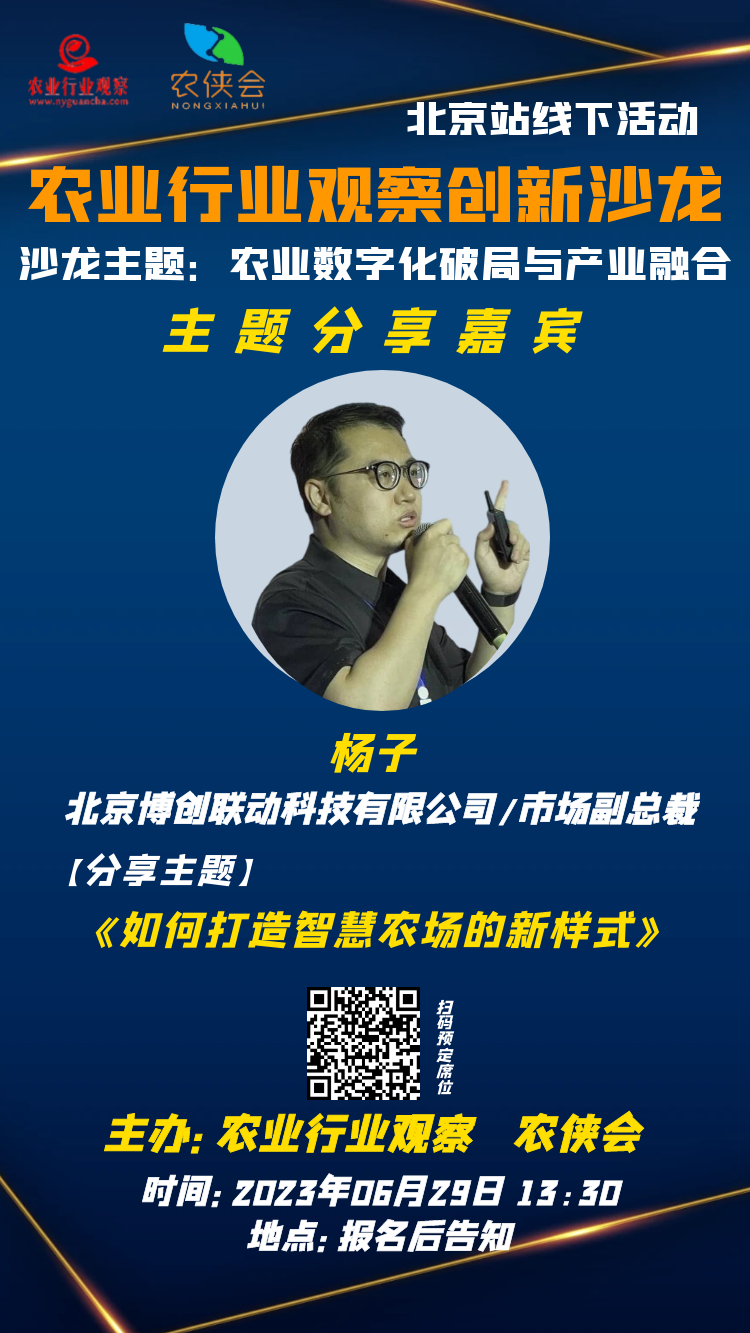 為了探討這些問題,農業行業觀察和農俠會將于6月29日共同主辦“農業行業觀察創新沙龍”(北京站)線下活動聚會,并邀請了眾多農業行業的專家和智慧農業、數字農業企業代表與負責人參加分享交流。