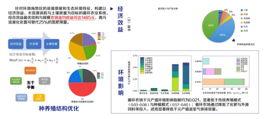安裝糞便處理發(fā)酵裝置,建立生態(tài)種養(yǎng)循環(huán)模式,循環(huán)農場千元產值環(huán)境影響指數(shù)約為0.021,顯著低于傳統(tǒng)養(yǎng)殖模式(0.03-0.06)與種植模式(0.57-0.60)。